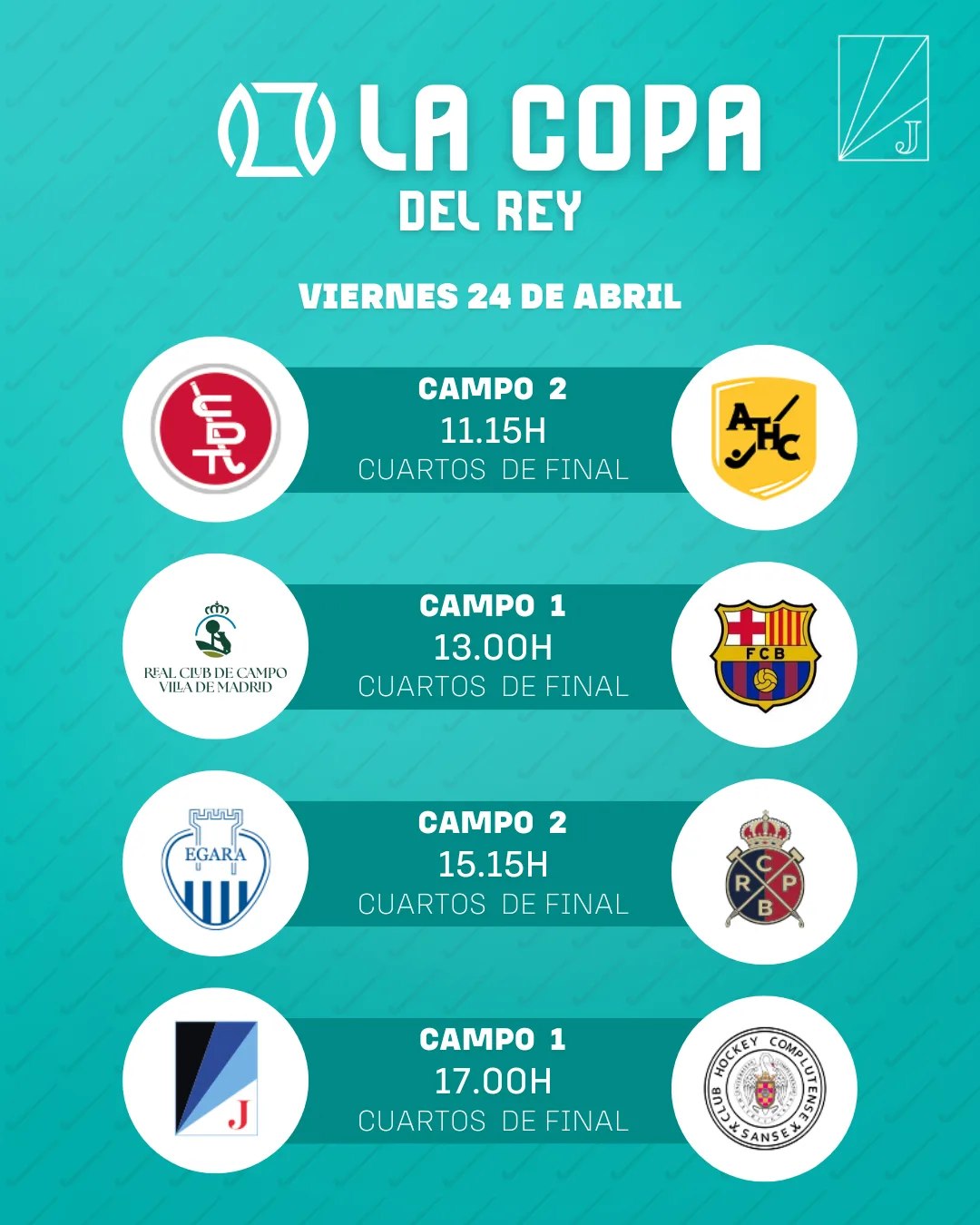 La Copa del Rey y la Reina Iberdrola 2026 calienta motores con el anuncio de los horarios y campos de todos los partidos. Ambos torneos tendrán lugar del 24 al 26 de abril en la sede del histórico Club Junior 1917, que este año celebra el centenario de su sección de hockey.