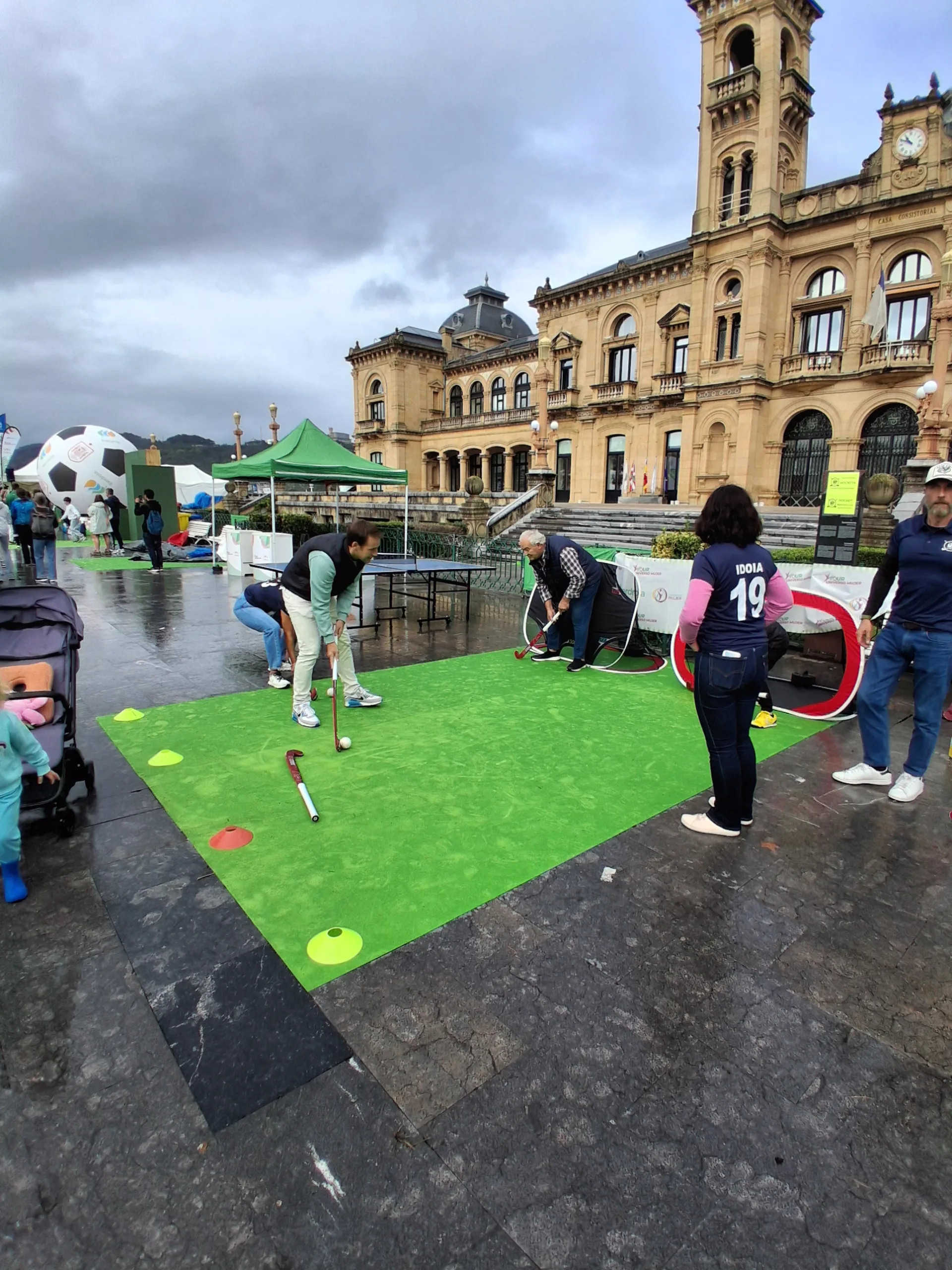 Las Federaciones Nacionales, Territoriales y clubes se volcaron en esta jornada tan especial, donde el hockey hierba estuvo muy bien representado por la Federación Guipuzcoana de Hockey y el club Atlético San Sebastián . La acogida por nuestro deporte por parte de todo el público fue fantástica y el hockey fue uno de los protagonistas más destacados del domingo. En todo momento el terreno de juego que allí se dispuso estuvo lleno y es que muchas personas se animaron a probar con el stick, especialmente niños y niñas. Y con un poco de ánimo, ¡también los padres se lanzaron al campo! En Donosti se volvió a demostrar que, con unas nociones básicas de las normas, el hockey se convierte en un juego divertido y accesible para todas las edades.