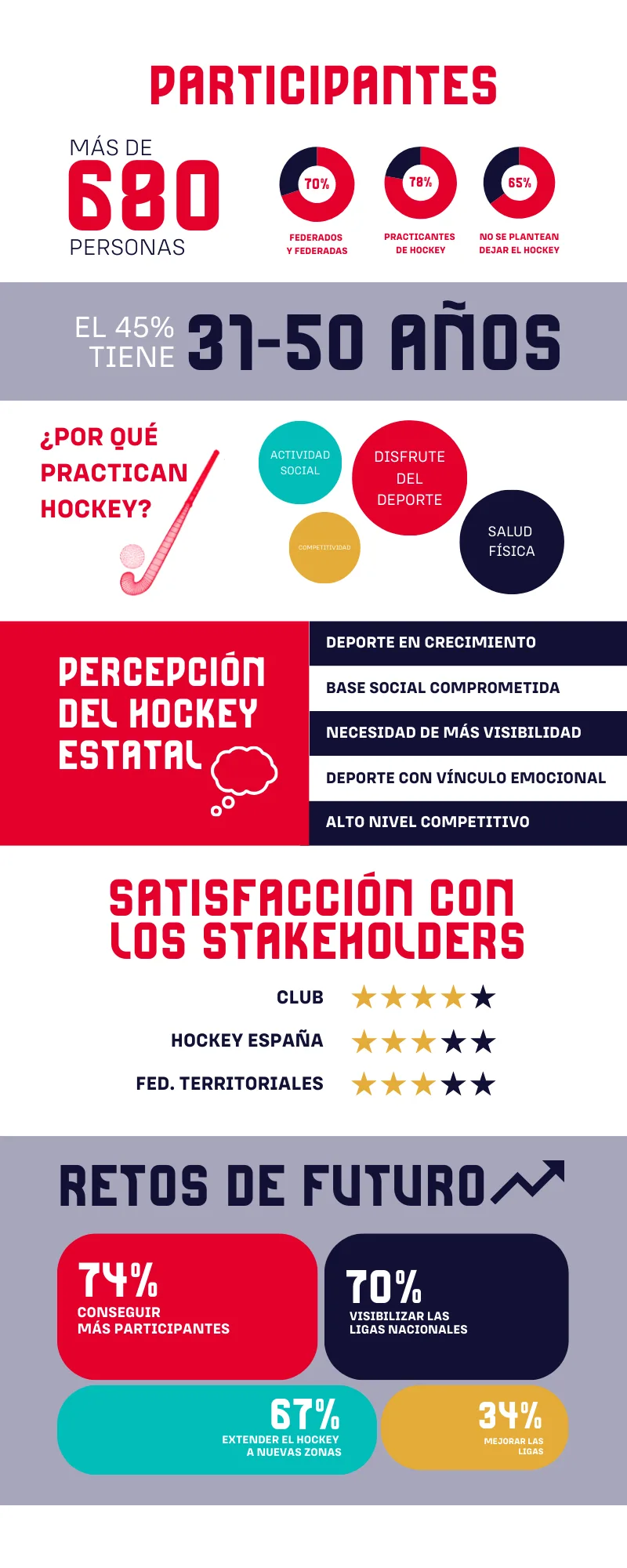 El informe ofrece una fotografía clara del estado emocional, estructural y estratégico del hockey en España. Y el mensaje general es inequívoco: el deporte se percibe en crecimiento, cuenta con una base social fiel y comprometida, pero necesita dar un salto en visibilidad y expansión territorial.